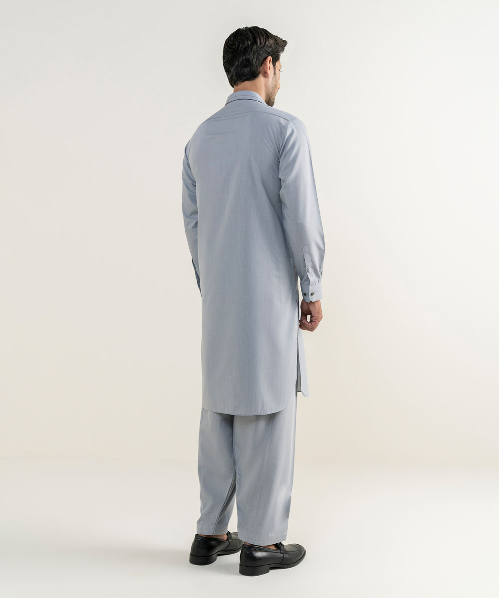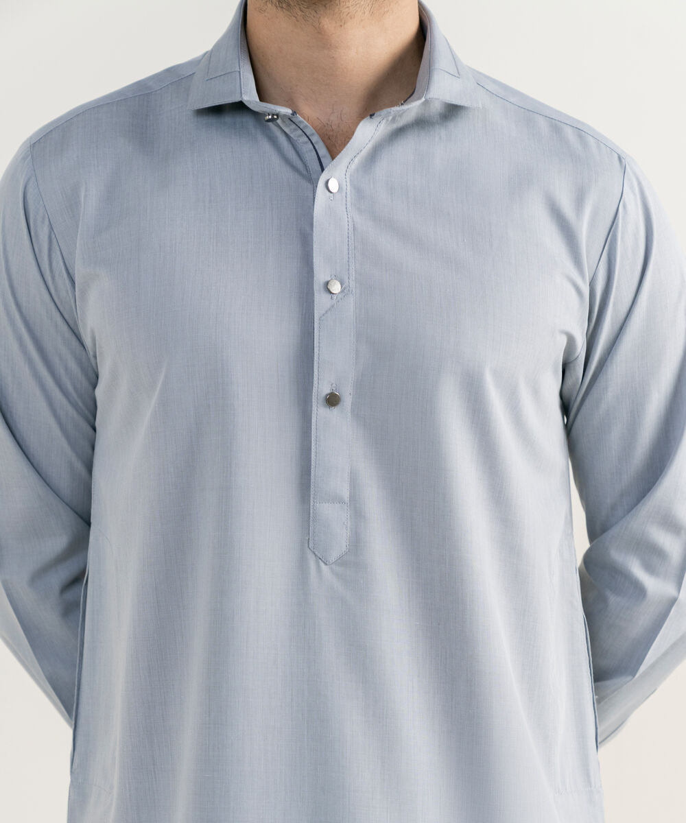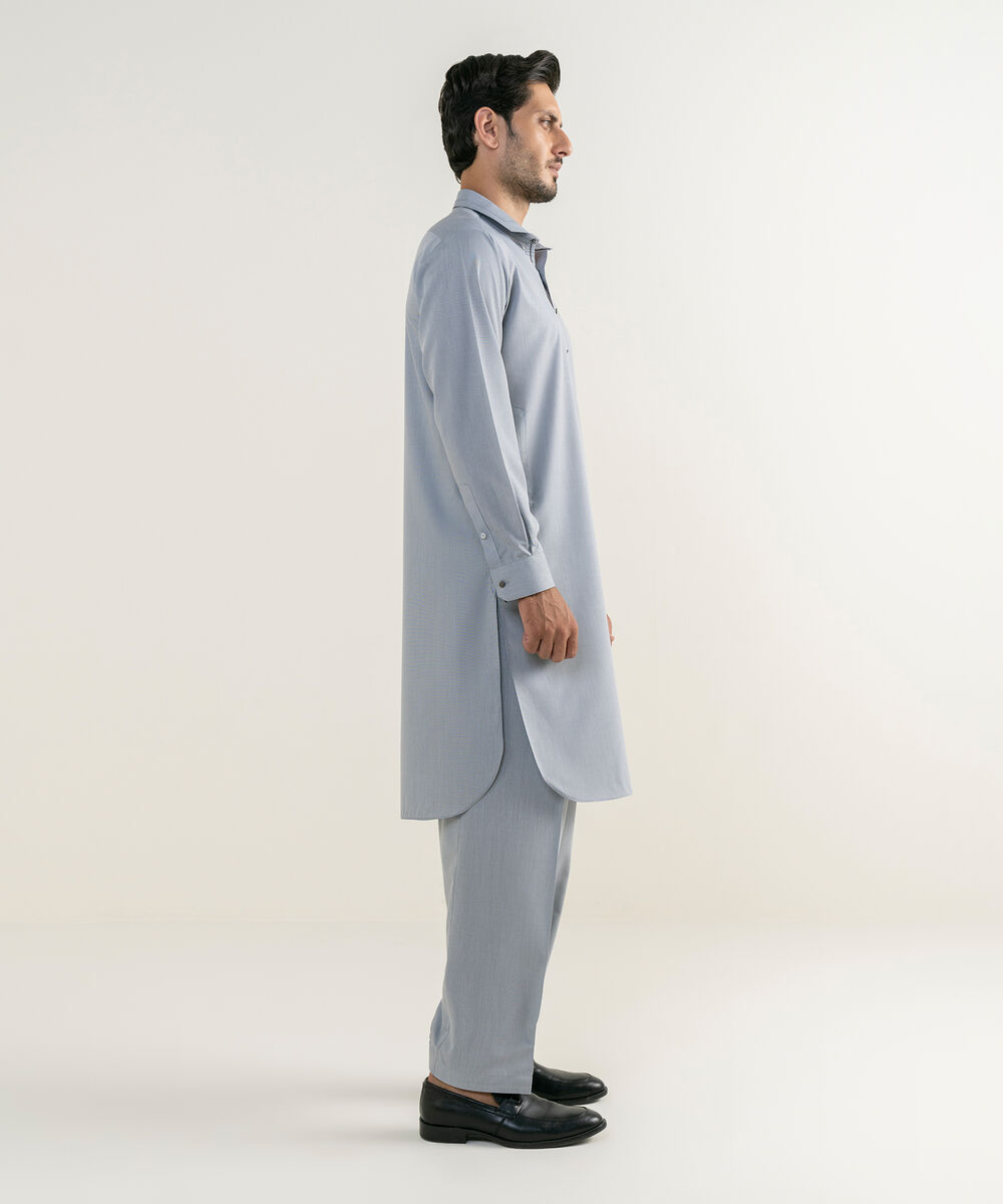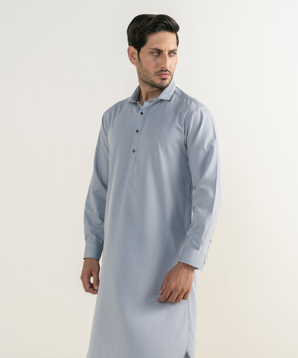 Make a dapper statement with our dyed light grey shalwar kameez.