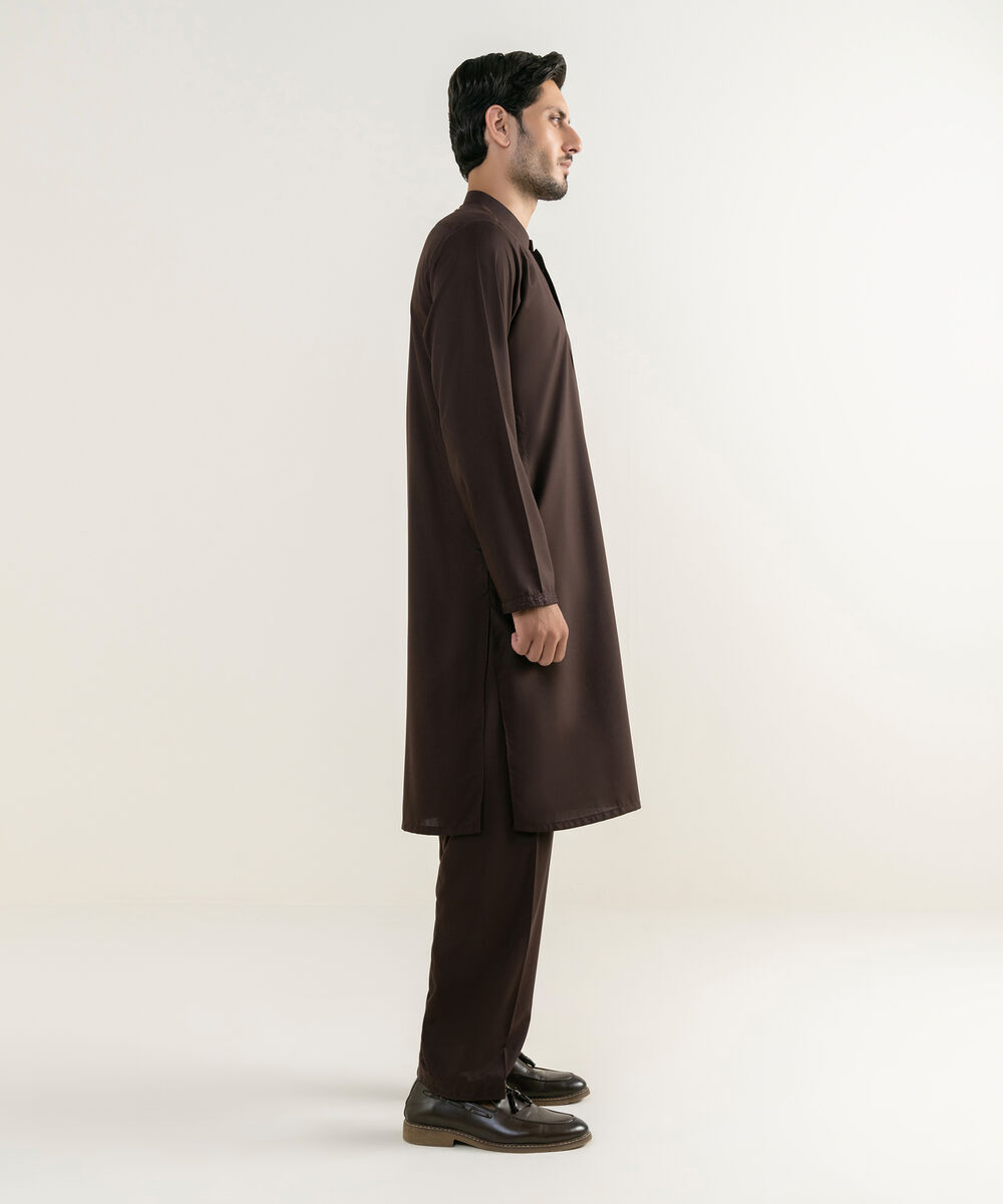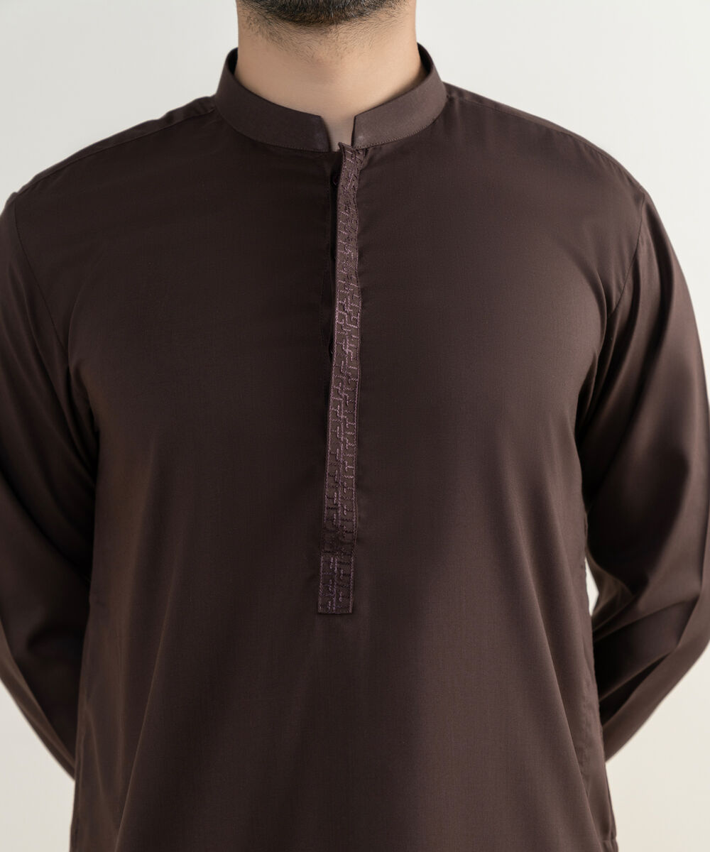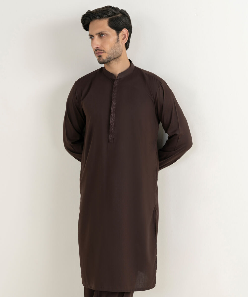 Make a dapper statement with our embroidered maroon shalwar kameez.