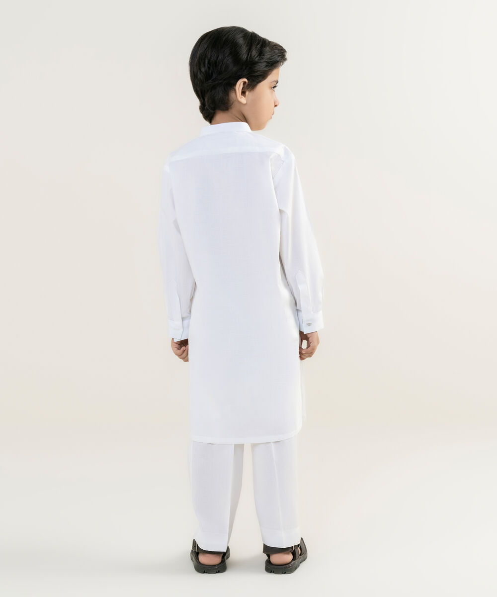 Solid Plain Front, Solid Plain Back, Band Neckline, Standard Placket, Cuff SleevesColour: WhiteFabric: Cotton