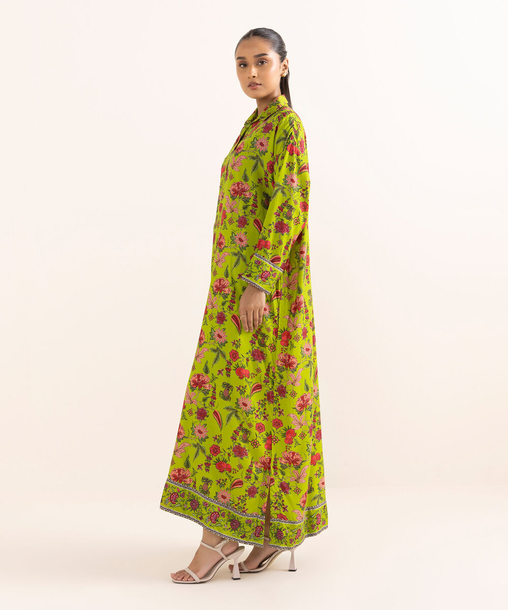 Printed Front Panel, Printed Back Panel, Collar With Placket Neckline, Full Sleeves, Long Length