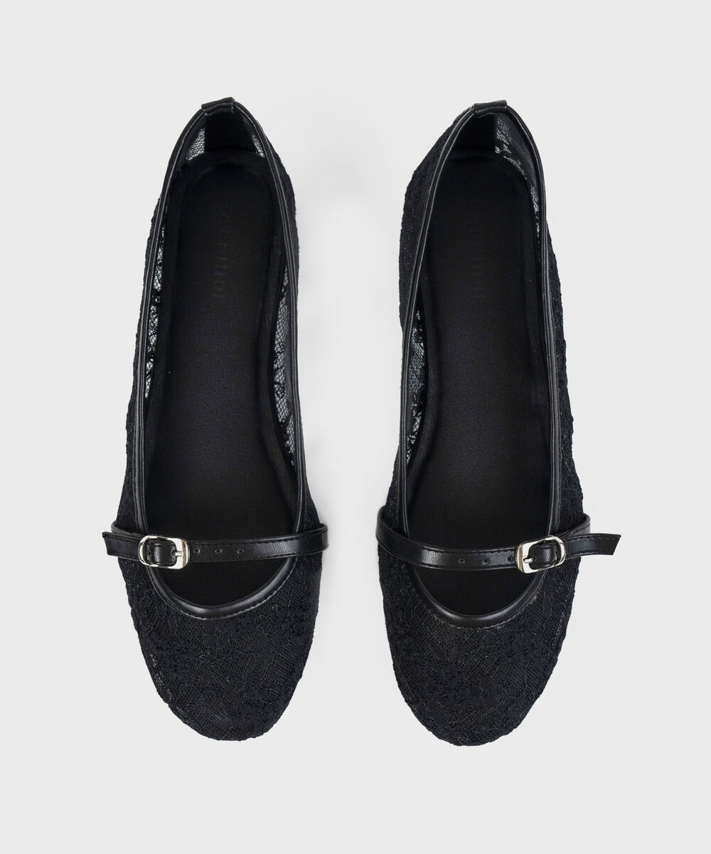Add a delicate touch to your look with our black round-toe Mary Janes in floral sheer net, finished with a padded insock for lasting comfort.