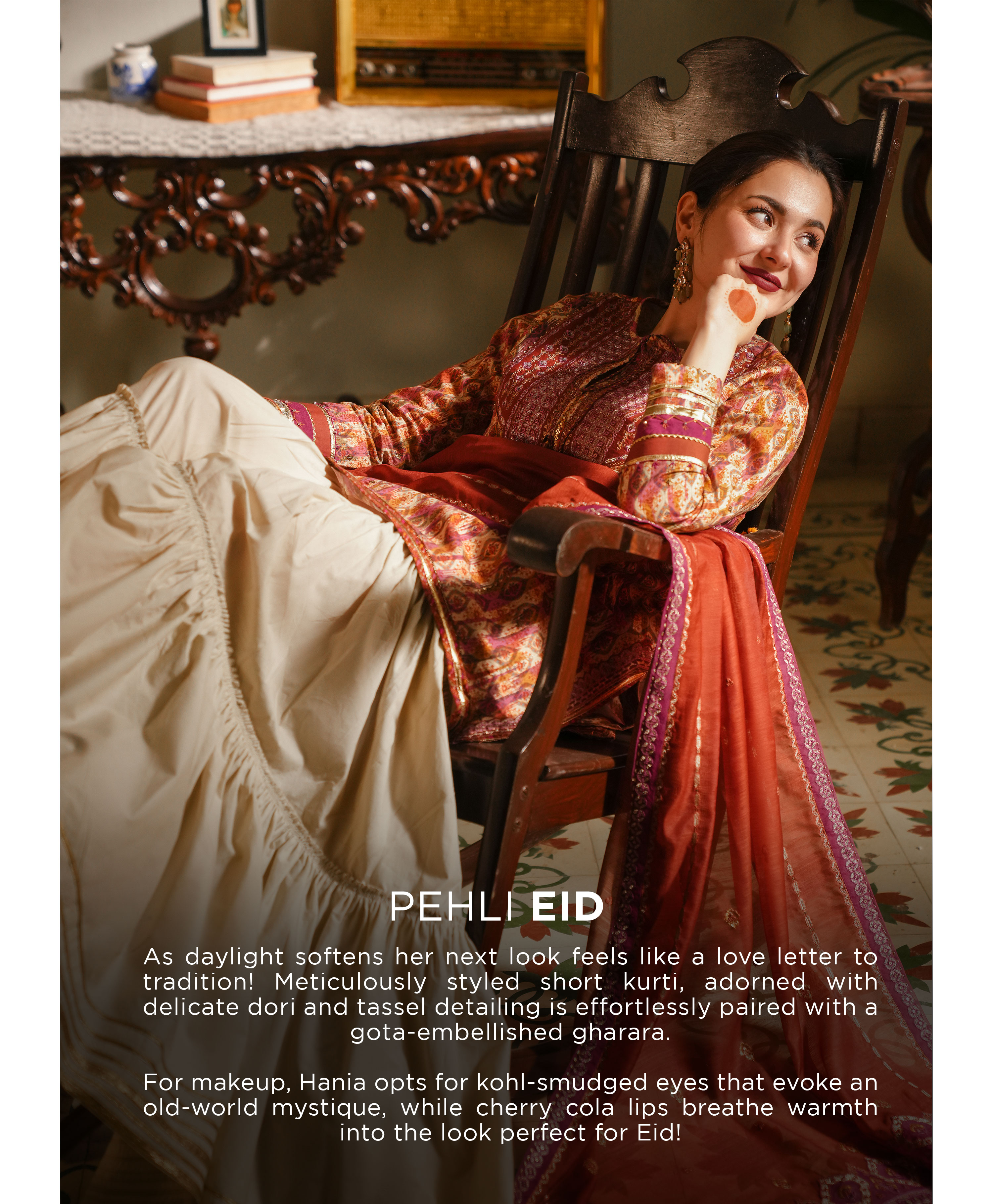 This Eid isn’t just a celebration - it’s a feeling. And with Hania Aamir embodying the Eid spirit with our Unstitched Eid I collection, each look is an invitation to embrace the season with heartfelt joy – a reminder that while the days pass and styles evolve, the feeling of Eid remains eternal, waiting to be relived, year after year!