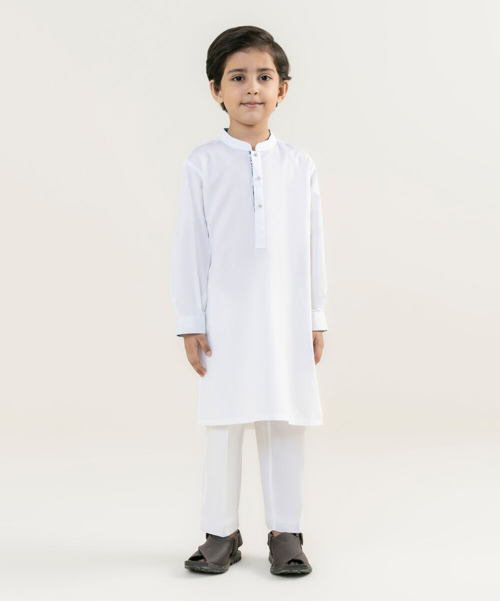 When the moment calls for something extra, our embroidered suits and kurtas step in with quiet sophistication. Subtle Schiffli patterns and tonal threadwork elevate the look while keeping it wearable. Think of Eid mornings, family portraits, or cultural evenings; these are pieces you’ll turn to again and again. Choose pastels for a coordinated feel, or go bold with contrasting tones like black and maroon for a standout father-son style.